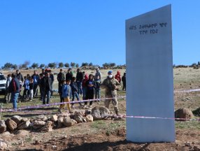 Şanlıurfa'da, Göbeklitepe yakınlarındaki tarlada yaklaşık 4 gün önce toprağa saplı halde bulunan metal blok (monolit) kaldırıldı.